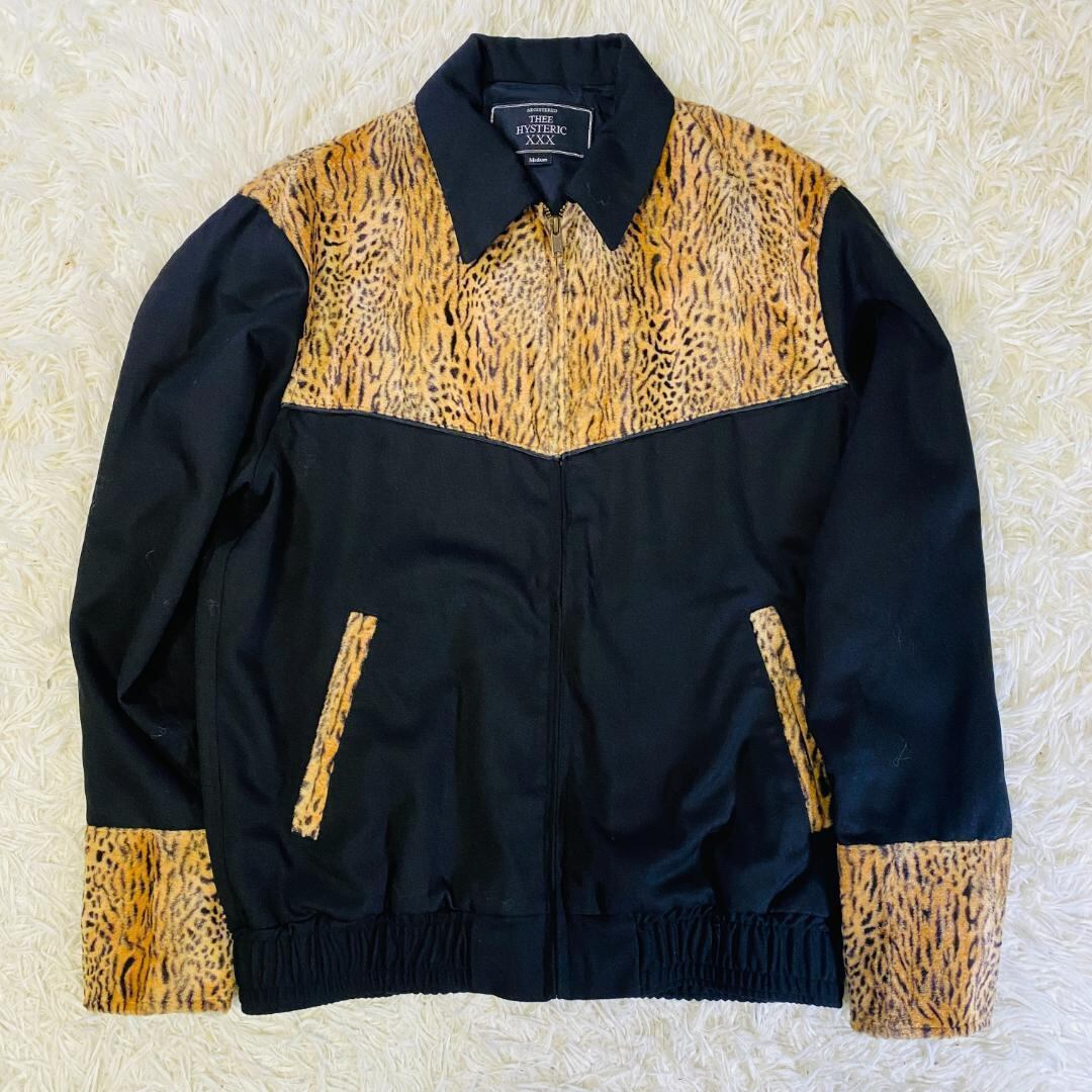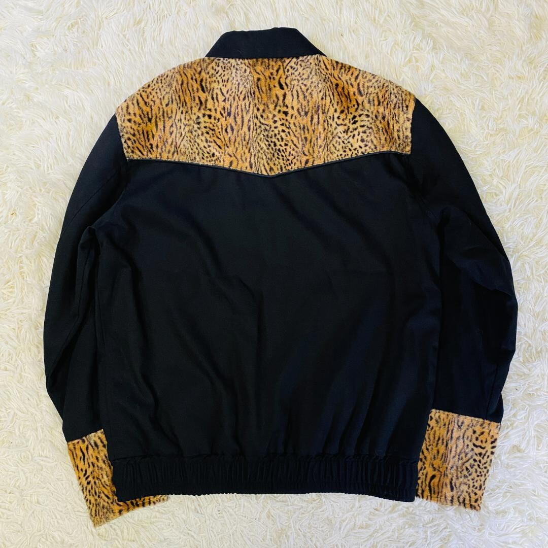 レオパード柄の上品な光沢ある切替が目を引くウエスタンジャケット 裾はゴム仕様・袖口はスナップ釦仕様で、ゆとり感あるサイズ感ですが裾・袖口は絞ってあり、全体的に丸みのあるシルエットです